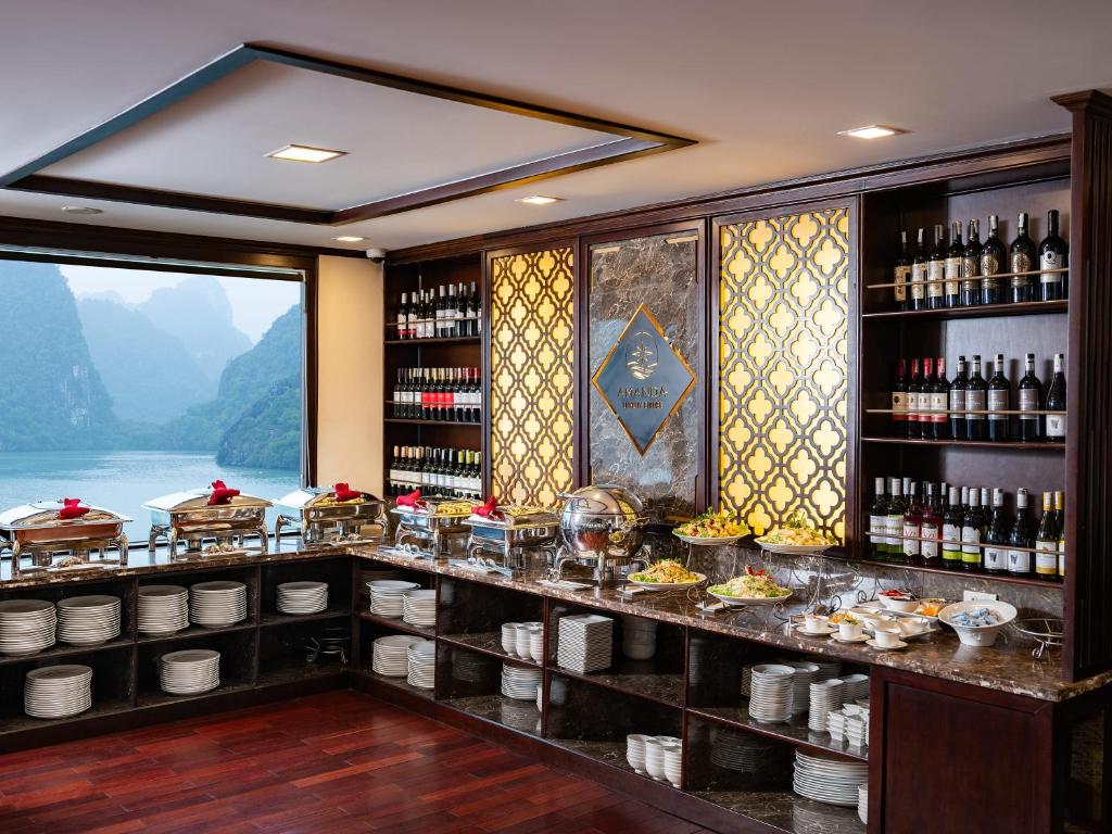 Departing from Hanoi, the Amanda Luxury Cruise combines elegant design, premium service, and unforgettable experiences. Guests can relax in spacious cabins with private balconies overlooking the bay, enjoy gourmet Vietnamese and international cuisine, and participate in exciting activities such as kayaking through limestone karsts, swimming in clear waters, exploring hidden caves, and enjoying a sunset party on the sundeck.